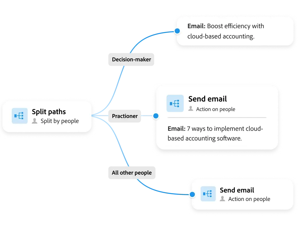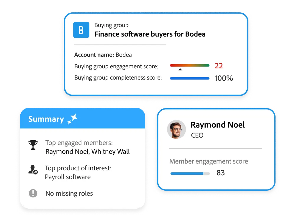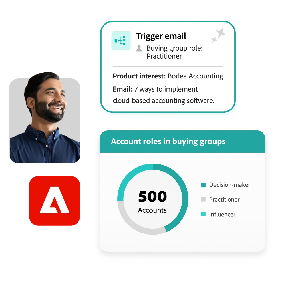 다양한 Adobe 애플리케이션과 서드파티 애플리케이션의 데이터, 인프라, 연결성을 그대로 이용해 계정과 구매 그룹의 여정을 확대할 수 있습니다.