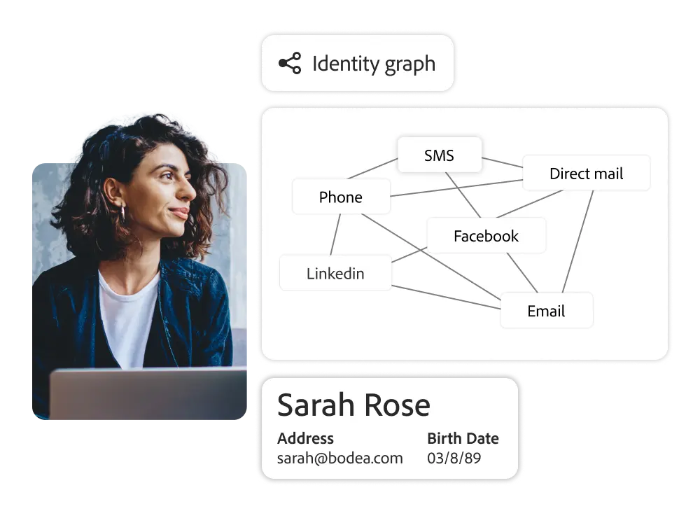 온라인과 오프라인에서 채널, 디바이스, 시간과 상관없이 고객 ID, 특성, 행동 데이터를 통합하고 이를 단일 프로파일에 적용하여 종합적인 고객 인사이트를 확보하세요.