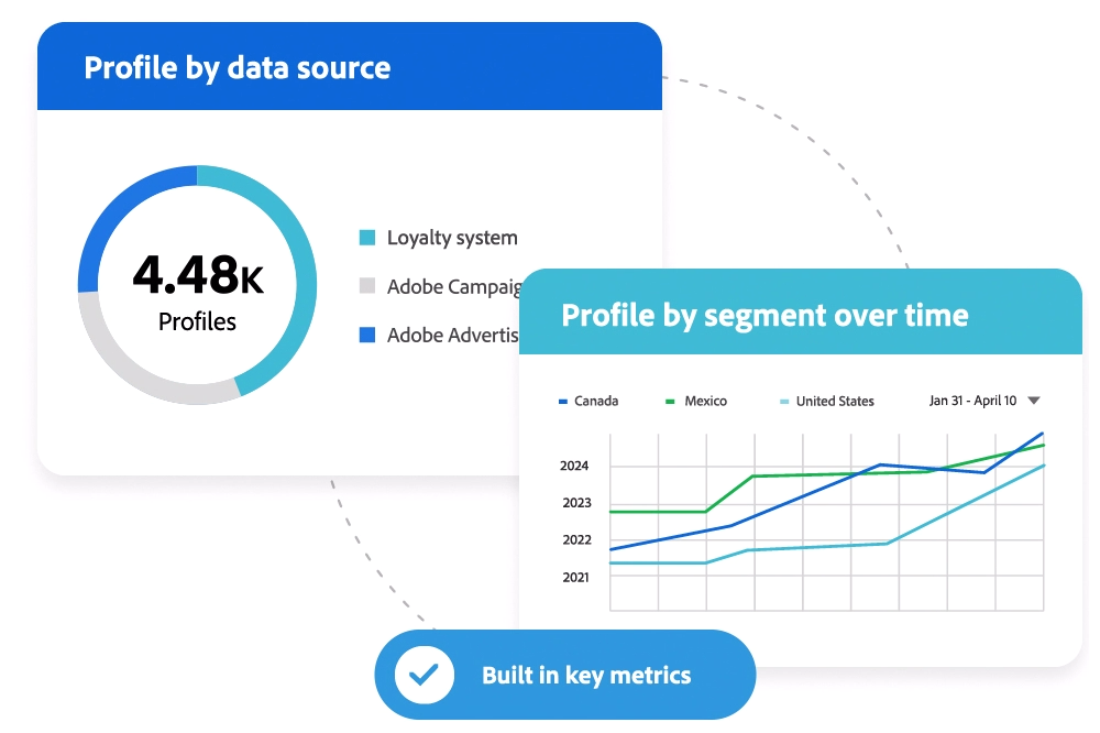 - 오디언스 발굴 및 관리. 데이터 정확도를 위한 원칙 및 실천 사항을 관리하고 시간 경과에 따른 규모 변화를 추적하면서 선제적으로 오디언스를 파악합니다.